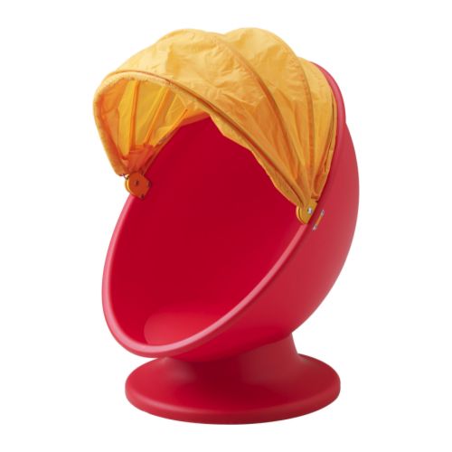 Ikea ikea ps lömsk swivel armchair white red with the hood pulled down the armchair is a secret hiding place for the child.